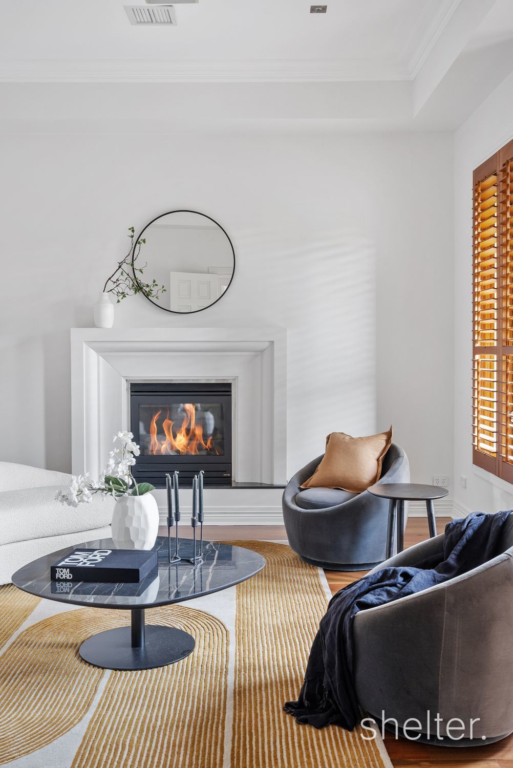 Soaring ceilings highlight the interior showcasing numerous light streamed living configurations with a home office, formal lounge and dining rooms gracing the front of the home before a hallway leads to hardwood steps introducing an elevated, relaxed open plan living and dining precinct connected to a comprehensively equipped kitchen fitted with premium ILVE and ASKO appliances and a butler’s pantry/laundry. Glass doors allow flow from indoors to the outdoor entertaining zones where a sun-soaked alfresco deck is accompanied by a paved patio and lush lawn. A sleek bathroom and a storage room complete downstairs.