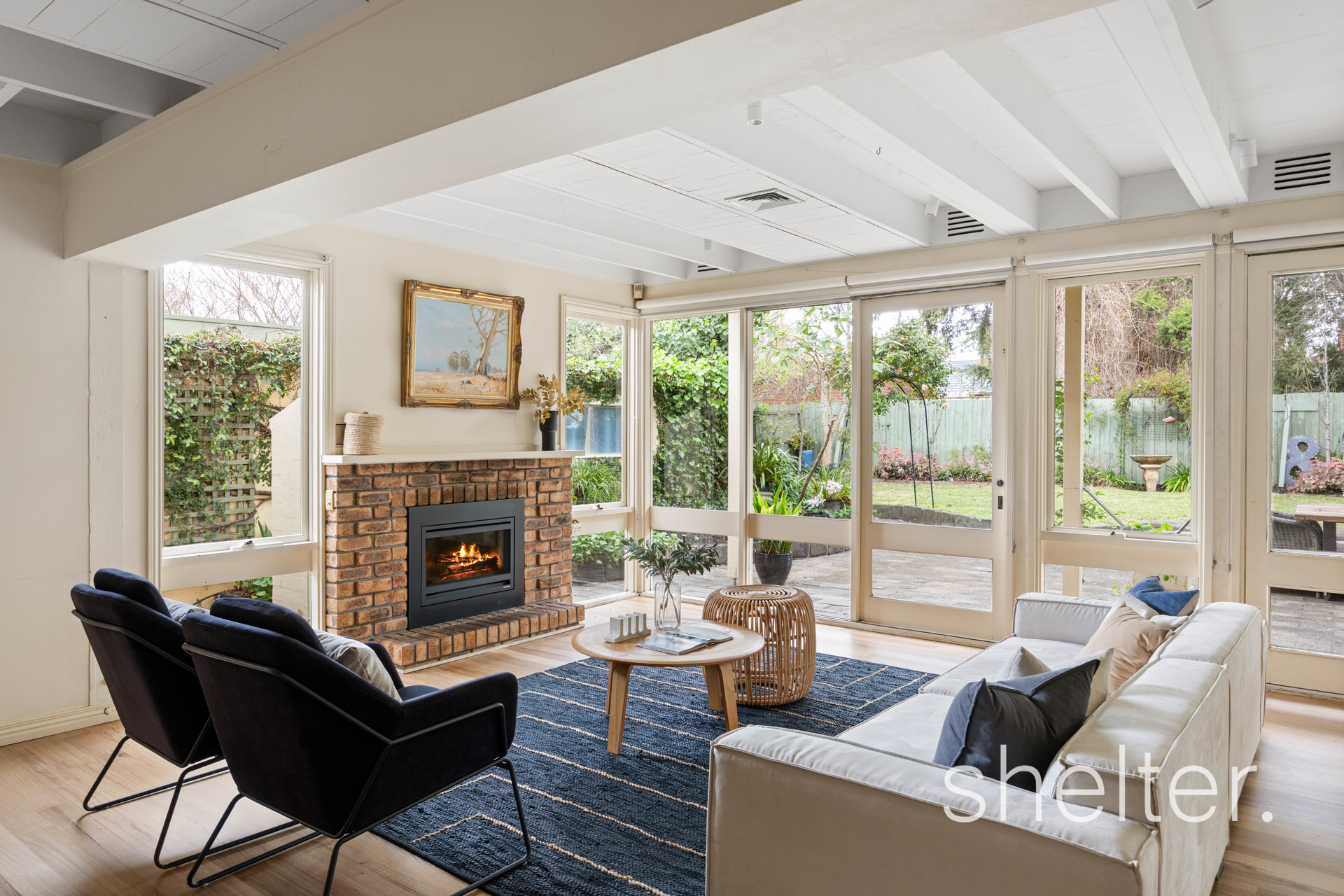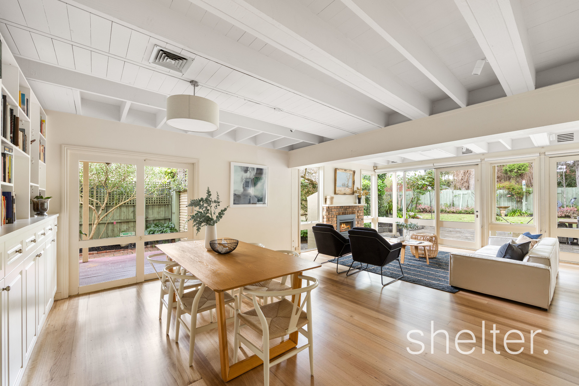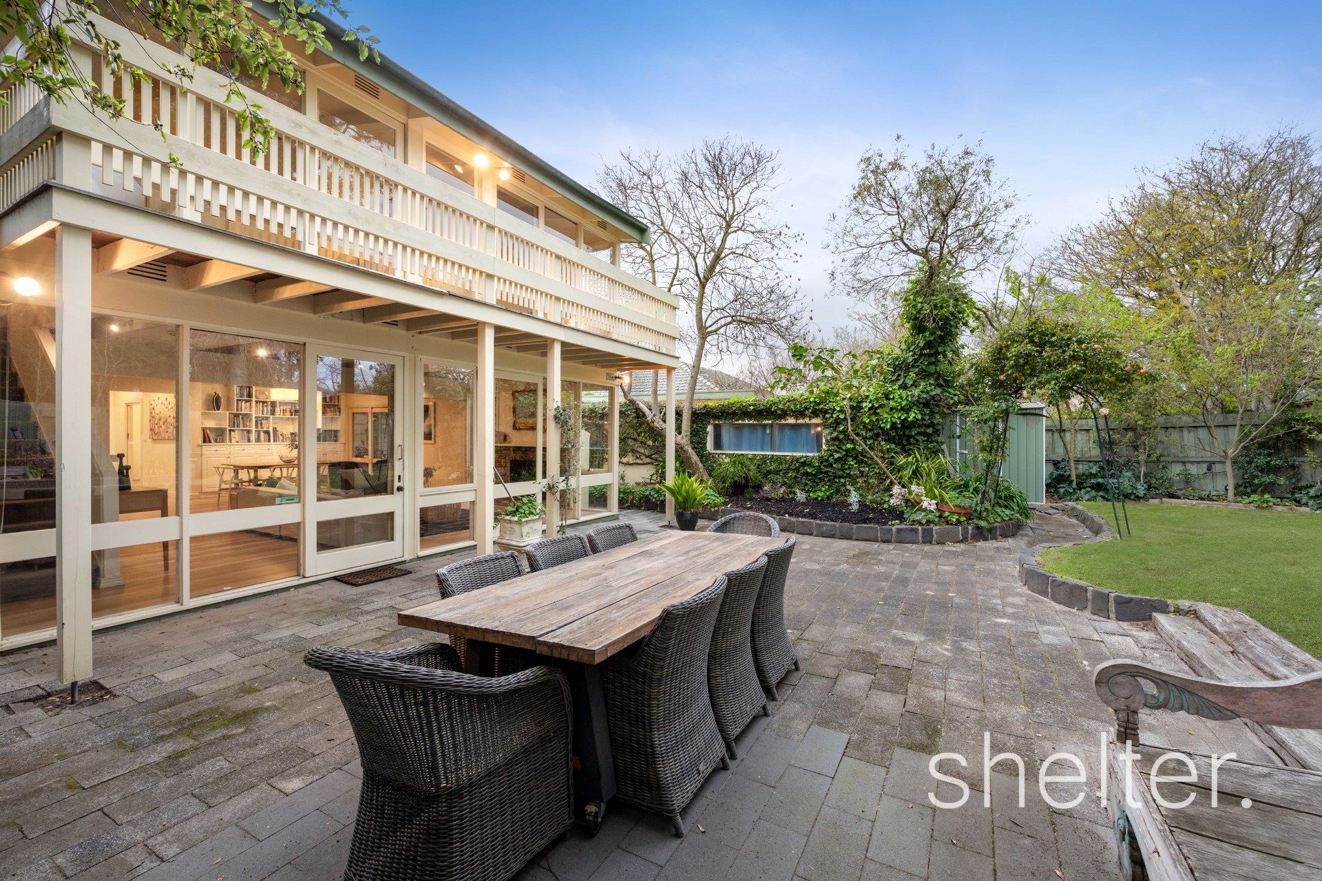 Centrally positioned, the renovated kitchen appointed with abundant storage, stone benchtops, dishwasher and a Smeg industrial sized gas cooktop and oven flows through to the expansive dining and living domain warmed by the gas log fire. Glass sliders open the living space to an extensive paved patio providing the idyllic space for entertaining family and friends in the sunshine; embraced by serene, established gardens attracting native birds. Upstairs, zoned accommodation comprises a main suite with an exclusive undercover terrace balcony and a luxe dual access bathroom featuring a soak tub while two further bedrooms fitted with built in robes share a balcony overlooking the rear garden.