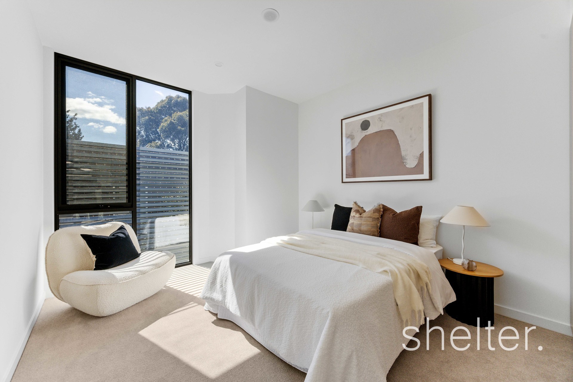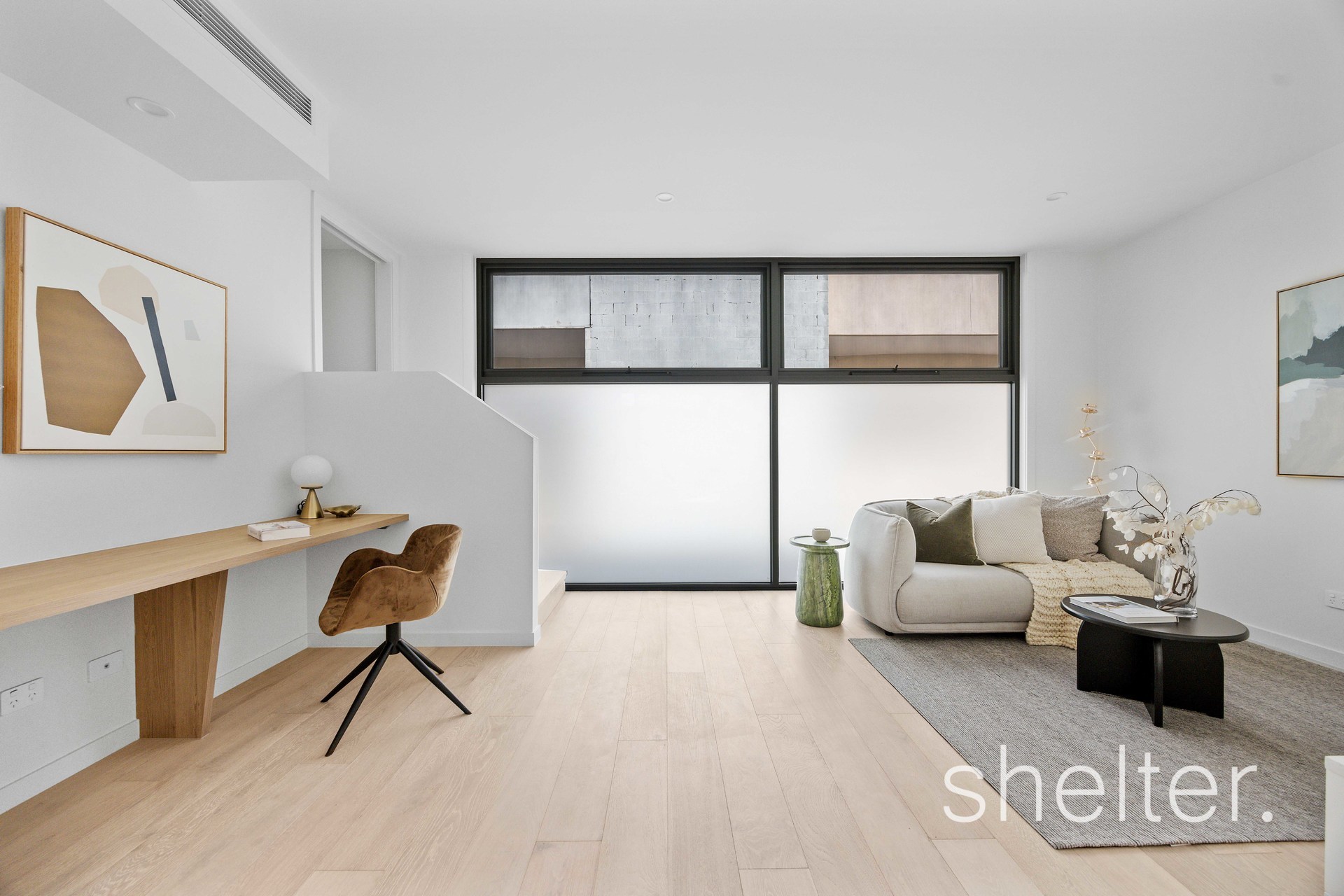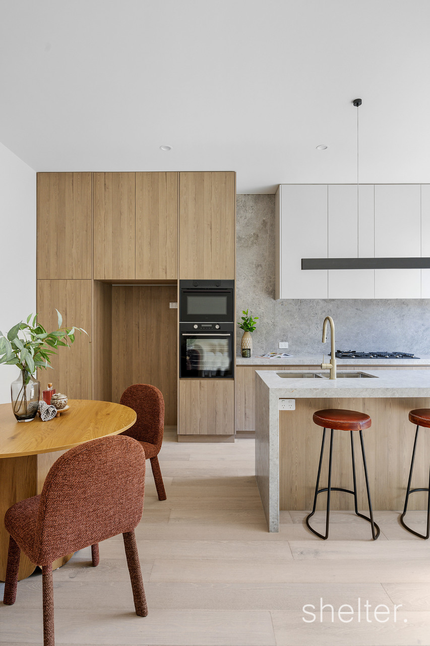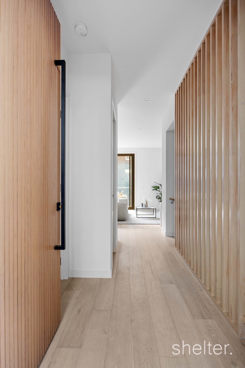 Designed by the acclaimed Mezz Group, the home is a testament to quality and timeless appeal. A calm, neutral palette is paired with light oak engineered timber floors and soaring three metre ceilings, creating an inviting sense of space and sophistication.
