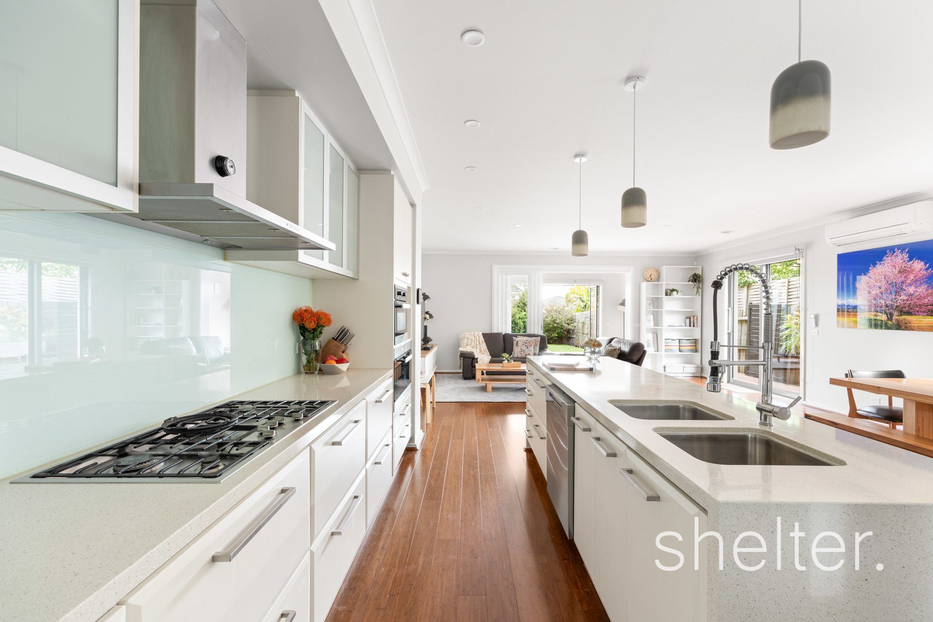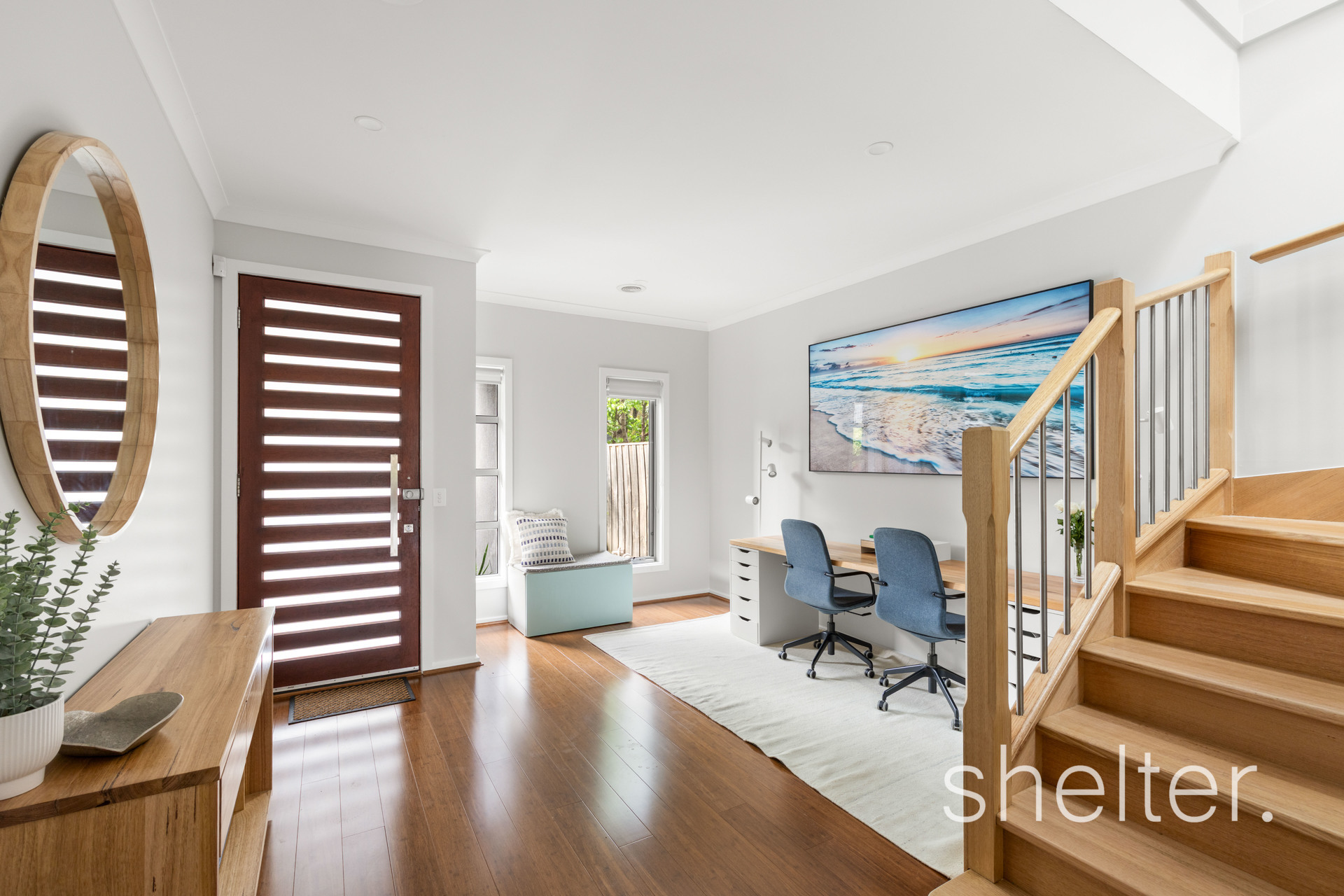 A standalone studio in the rear garden provides the ultimate working from home office with versatility to host hobbies or fitness endeavours. A powder room, internal access from the remote lock up garage plus a fully fitted laundry with external access provide convenience to the downstairs domain. All three spacious bedrooms (BIRs) are zoned on the upper level alongside a luxe family bathroom with a standalone soak tub. The main retreat (BIRs) is expansive and boasts a sumptuous ensuite. Additional secure OSP, keypad entry, video security system, ducted heating, evaporative cooling, multiple split system heating/aircon units, under-stair storage plus a water tank are just some of the sensational extras on offer.